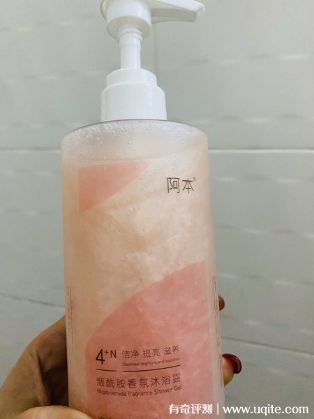 阿本沐浴露我是在抖音上種草的,開始是因?yàn)樗佒颠€蠻高的,就留意了一下,看到說里面有煙酰胺成分,雖然不知道有沒有用,但是對我這個(gè)黃皮來說還是蠻有吸引力的,就買了瓶試試。
