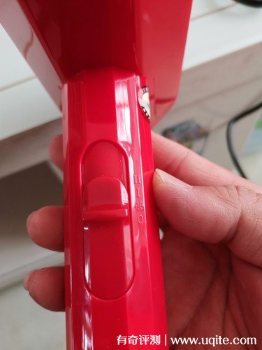 吹風機的顏值很高,是紅色的,很有設計感和時尚感,拿在手上的感覺也很好,一點也不重。質量也還可以,還有一個扁嘴頭,可以用來做做造型。吹風機拿到手后我就趕緊用了起來,吹風機一共有熱風、恒溫、自然風三種模式,操作起來很方便。