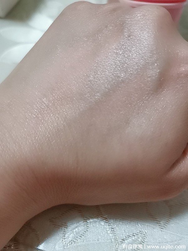 它的質(zhì)地是很水潤的類型,特別好推開,不粘手,但剛涂上去的時候滋潤感會比較明顯,吸收速度還是挺快的,小半分鐘就好了,像我還是手心出汗的類型,也不會覺得粘膩。用完后手真的挺嫩的,軟fufu的,我本身手上肉又比較多,男票可喜歡捏著我的手玩了。保濕方便也很不錯,一整晚下來都不干。