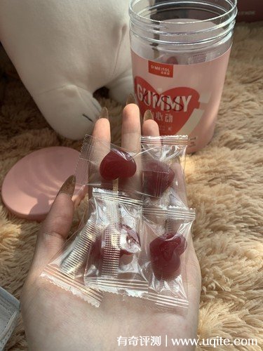 產(chǎn)品的包裝非常好看,里面的軟糖真的是心形的,看著就很有少女心。每一粒軟糖都是獨(dú)立的包裝,非常的衛(wèi)生,而且外出放幾顆在包里攜帶也很方便。軟糖聞起來倒沒有什么太大的香味,但是吃在嘴里是紅石榴口味的,有一點(diǎn)點(diǎn)甜味,但是是沒有熱量和脂肪的,非常的健康。