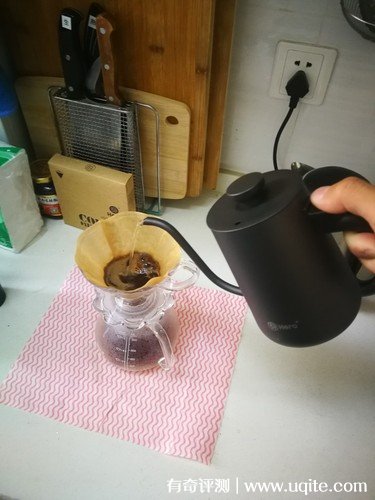 手沖壺手感不錯(cuò),出水均勻,速度可控,沒有向下滴水現(xiàn)象;十瓣花的濾杯外形討喜,設(shè)計(jì)感很強(qiáng),配上濾紙做一杯美味的咖啡,很是享受!