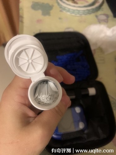 精準(zhǔn)度上,拜安康血糖儀是完全滿(mǎn)足日常所需的,再來(lái)說(shuō)說(shuō)操作。采血筆有多個(gè)檔位可選,針頭的長(zhǎng)度不同,插入的深度自然不同,四檔挺疼的,用二檔夠了。提前血糖儀開(kāi)機(jī)插上試紙,破口后就可以把血弄到試紙上。