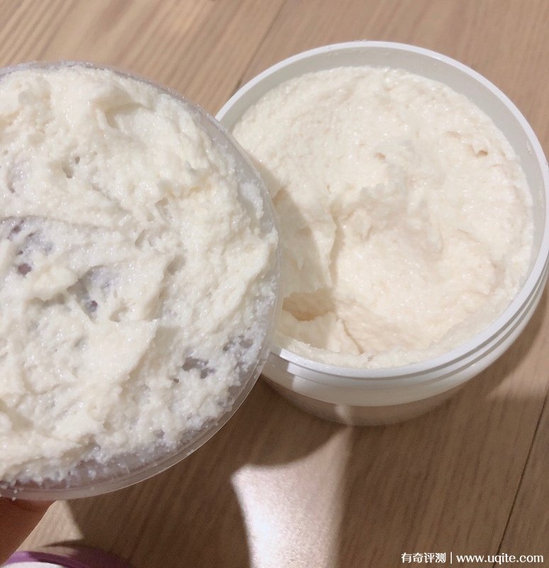 它的質(zhì)地比較不一樣,里面都沒(méi)啥水分,基本就是磨砂顆粒。打開(kāi)之后就有一股果酸的氣味飄來(lái),我覺(jué)得還不錯(cuò),就是原料本身純正的味道。