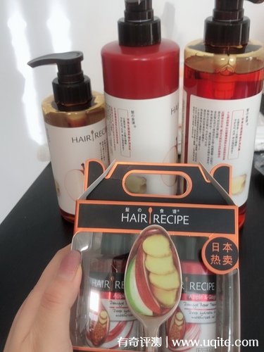 Hair Recipe洗護(hù)套裝到手的時(shí)候還送了很多小樣,感覺挺劃算的。它的味道聞著有一股蘋果的清香味,生姜味我沒有聞到,這個(gè)味道我還挺喜歡的,洗完之后留香也不錯(cuò),基本上洗完一兩天頭發(fā)上還有它的味道。