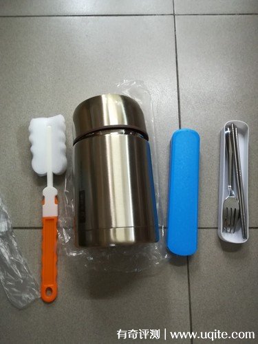 賣家還送了不銹鋼餐具、提包和食譜,可以說是非常貼心了,并且燜燒杯口還有泄氣閥門,也不用擔(dān)心打開的時候會有氣炸出來,唯一不足的是杯口有點小,不太容易清洗,不過好在賣家送了杯刷,總的來說還是非常滿意的。