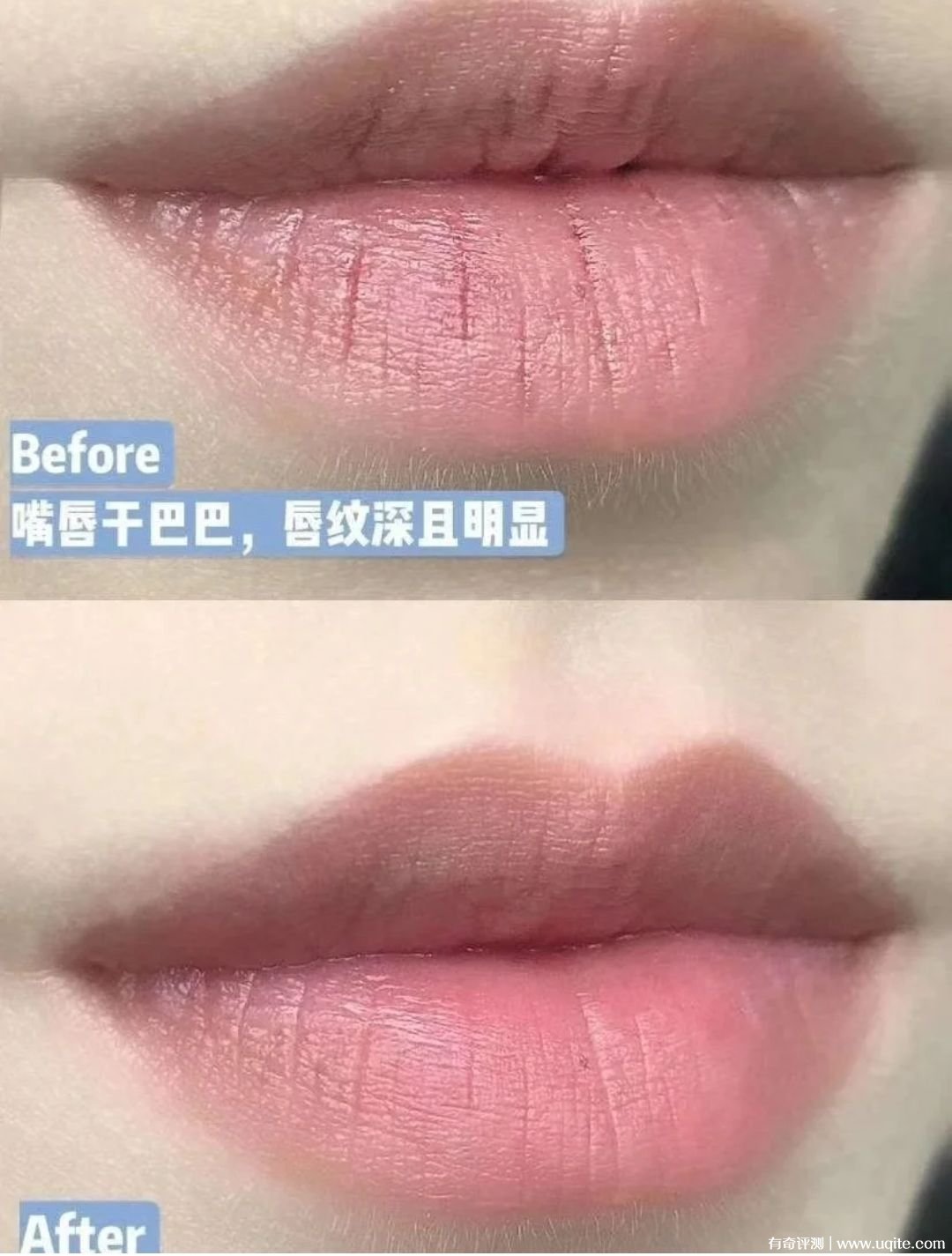 kemu唇乳真的和普通用在臉上的乳液挺像的,每次用水乳就自然而然想到要用它,完全不會(huì)落下。質(zhì)地是偏滋潤(rùn)型的乳液,涂上之后吸收倒是挺快的,真的就幾秒鐘,不比護(hù)膚乳液差,用完后沒(méi)什么明顯存在感,只覺(jué)得嘴巴軟軟嫩嫩的,很有水分感,它沒(méi)有浮在表面,平時(shí)用來(lái)當(dāng)口紅打底超合適!像mac我以前不敢輕易用,不涂唇膏干到我懷疑人生,涂了唇膏又因?yàn)榇礁嗵珴?rùn),容易涂不勻并且脫色,這個(gè)唇乳就很接近啞光質(zhì)感,對(duì)口紅妝感沒(méi)有影響,保濕也很好,白天出門(mén)在外八九個(gè)小時(shí)都不會(huì)起皮。