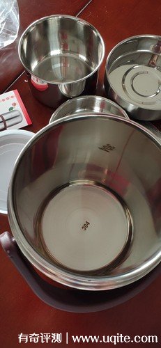 這款保溫飯盒總共有3層之分,飯、菜、湯都可以分開放,也不用擔(dān)心串味的問(wèn)題,2L的容量也完全夠用了,對(duì)于我來(lái)說(shuō)還有點(diǎn)多,里面的內(nèi)膽是304不銹鋼材質(zhì)的,還有304鋼印,使用起來(lái)非常的安心,自己帶飯比外面買的要干凈多了。