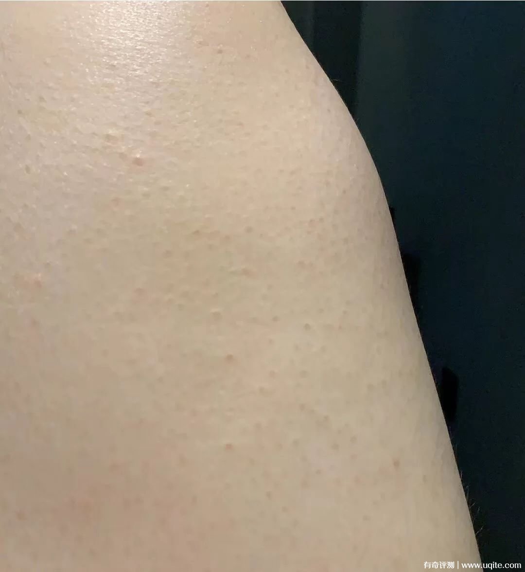 至于去雞皮的效果,我用了一個多月了,比普通身體乳好太多了,雞皮疙瘩少了特別多,摸著沒以前那么剌手了,隔遠(yuǎn)點都看不太出來了,我挺滿意的。