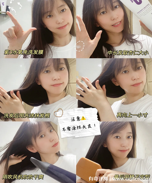 使用發(fā)膜時(shí),我一般會(huì)在洗完頭發(fā)之后,在半干的情況下進(jìn)行涂抹,因?yàn)槲业念^發(fā)也不算很長很厚,所以每次用大指姆蓋大小的發(fā)膜液就可以了。均勻涂抹時(shí)盡量不要接觸到頭皮,涂抹往之后有吹風(fēng)機(jī)進(jìn)行吹干就可以了,最好再用梳子定型。