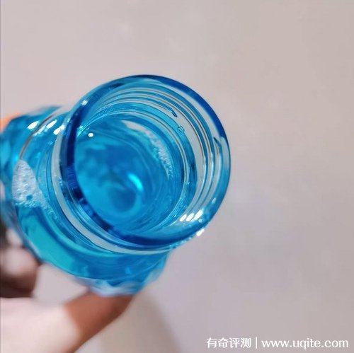 漱口水的瓶子設(shè)計(jì)很有質(zhì)感,拿在手上很舒服,瓶蓋就相對于是一共小的漱口杯,每次使用這樣一小被的使用量就可以了,一瓶漱口水有260ml的使用量,三瓶感覺能有很久的樣子。漱口水是藍(lán)色的水狀質(zhì)地,聞起來有點(diǎn)點(diǎn)香味,好聞不刺鼻。