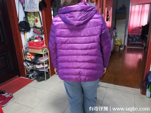 上身試了一下,感覺還是非常暖和的,看了一下標簽,里面的充絨量達到了90%,比很多大牌羽絨服的含絨量還要多,而且穿上身上很輕薄,完全沒有壓迫感,一點也不顯臃腫,春秋穿剛剛好,再冷一些的時候可以與大衣一起疊穿,對于怕冷的老人來說還是蠻不錯的。