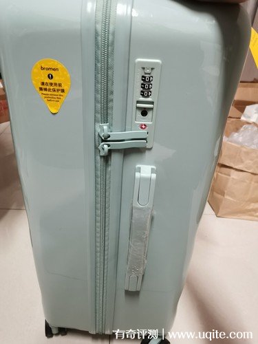 拉桿箱的質(zhì)量做工很好,PC防刮的材質(zhì),一共有藍(lán)、橙、白、黑三種顏色,我入手的是藍(lán)色的這款。拉桿箱的顏值真的很高,而且產(chǎn)品摸起來手感很好。這款拉桿箱是拉鏈密碼鎖的設(shè)計(jì),而且還有嵌入式海關(guān)鎖,使用起來更安全,防磕碰效果更好。
