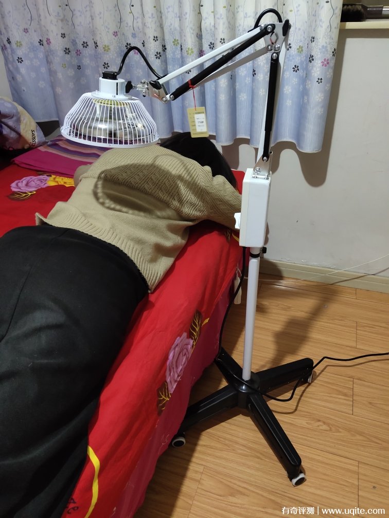 國仁理療燈雖然有傾斜自動斷電功能,但燈頭的溫度沒辦法快速消退,還是很燙人,所以不能直接與身體接觸,底部一定要放平,當然放平后還是很穩(wěn)的,底部很重,跟靠椅的設計類似。