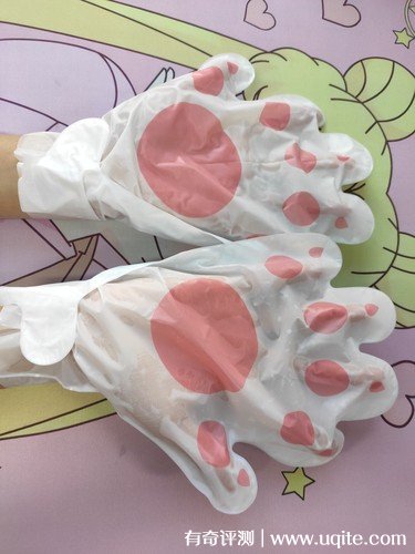 晚上洗完澡我就趕緊用了起來,手膜里面的精華液很多,手套的大小很合適,帶上剛剛好。我一般敷用的時間是在20分鐘左右,摘下可以再做一下手部按摩,然后再去用清水沖洗。