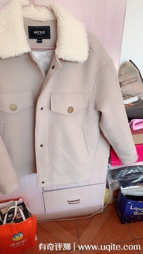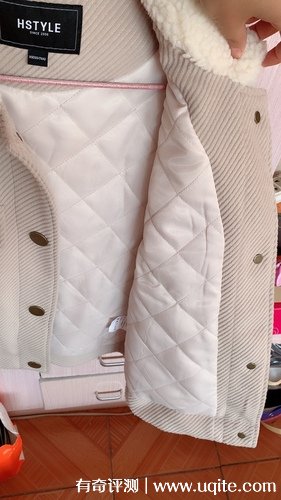 這款外套看上去特別有質(zhì)感,看了一下價格也不貴,領(lǐng)券之后購買花了三百多一點,衣服的領(lǐng)還是今年特別流行的羊羔毛,款式也很難 新穎,我買的是杏色,因為冬天深色衣服都比較多,就換一件淺色的,而且這個顏色也很顯氣質(zhì)和溫柔。