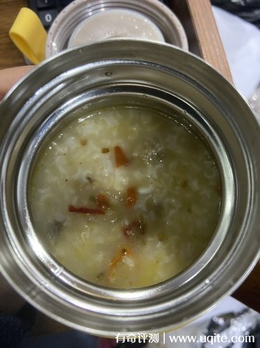 燜燒杯是雙層蓋,有很好的保溫密封效果,出門放在包里或者是領(lǐng)著也很方便,不用擔(dān)心會(huì)有漏水的情況。燜燒杯加熱食物的速度和口感還不錯(cuò),尤其是做粥什么的,我早上出門上班前放入開水和米進(jìn)去,中午十二點(diǎn)就完全熟透了,出來的口感很好,米質(zhì)很細(xì)膩。