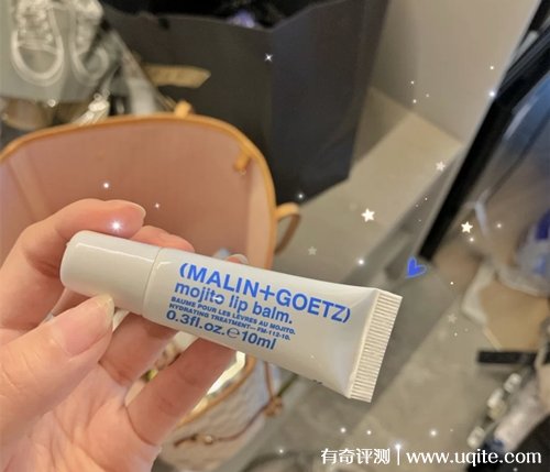 MALIN+GOETZ唇膏到手之后小小的一支,感覺比我想象中要小一點(diǎn),它的味道有兩種,一種是原味,一支是莫吉托(薄荷味),我買的是莫吉托的,涂在嘴巴上薄荷味還挺濃的,上嘴冰冰涼涼的。