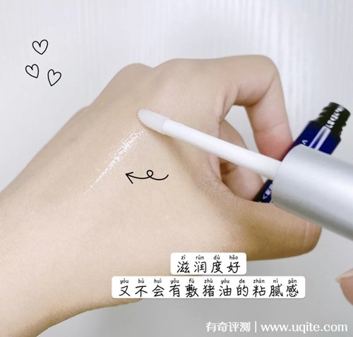 這款唇部精華的質地沒有那么黏,滋潤度很好,上嘴之后不會有敷豬油那樣的黏膩感,我一般都是晚上睡覺的之后厚厚的敷一層,就算厚涂也不會覺得黏嘴巴,而且它一整晚下來都不會干,我就算開電熱毯,早上起來也不會覺得嘴巴干,保濕效果還是很好的。