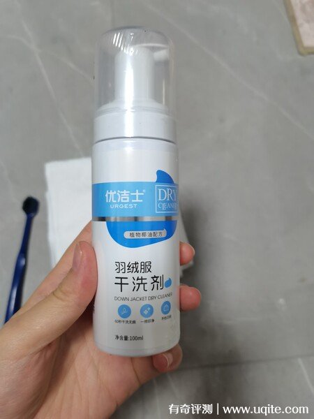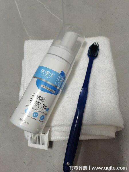 到手的時候有送牙刷和抹布,不過我感覺牙刷沒什么用處,因?yàn)槠綍r直接用手搓一搓就差不多了。優(yōu)潔士羽絨服干洗劑香味還不錯,是淡淡的清香,用完后香味隱隱約約的能維持挺久的。它按壓出來的泡沫和小白鞋清洗劑差不多,都是挺綿密的類型。