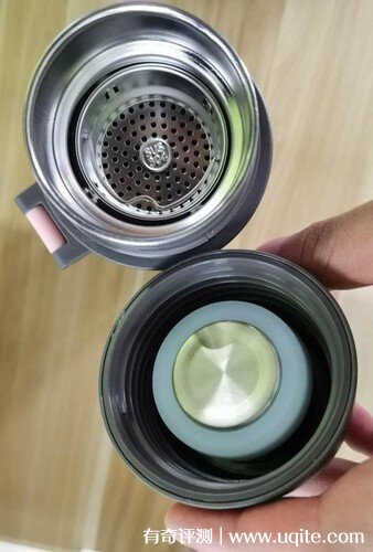 保溫杯是有一個(gè)濾簍的,就算是泡了茶葉或者是花茶,也不用擔(dān)心會(huì)和喝到渣。保溫杯的保溫效果是很好的,我晚上睡覺前倒的一杯熱水(為了晚上喝水方便),到了早上再飲用都還是溫?zé)岬?,這個(gè)保溫效果還是挺讓我驚喜的。