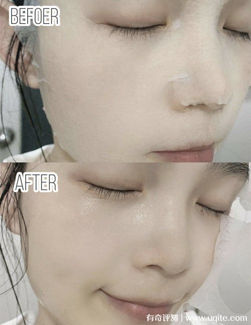 它的膜布大小裁剪的很好,貼在臉上很服帖,貼的時候也不會往下面掉精華,這款面膜我一般都是敷15分鐘之后,面膜取下來之后還可以擠出點精華,敷任何面膜都是需要洗的,洗完之后皮膚就像喝飽了水一樣,非常水潤,就像洗完后不及時涂水乳,也不會覺得干,保濕效果還挺不錯的。