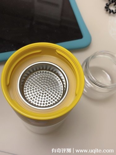 杯子是分為上半部分,和下半部分的,上半部分,就是用來(lái)放茶葉的空間,下半部分則是放水的地方,中間小黃鴨的接口是有一個(gè)過(guò)濾隔離網(wǎng)的,所以既能在泡茶的同時(shí)又能分離茶葉和水,很具有設(shè)計(jì)風(fēng)格。