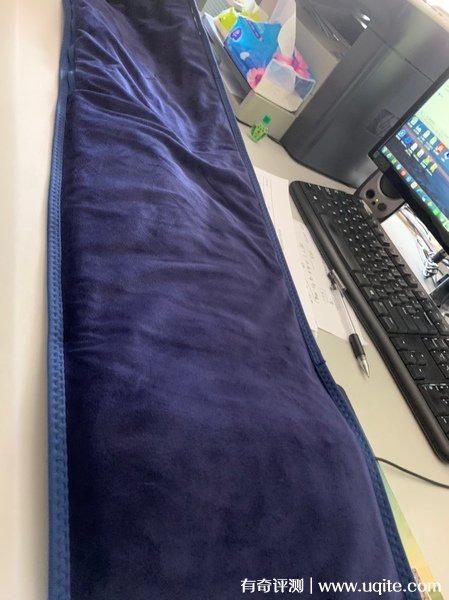 敷輕松電子熱敷墊做工挺好的,線頭什么的走的挺密,很結(jié)實(shí)的感覺(jué),電線開(kāi)關(guān)也沒(méi)啥瑕疵。布料很舒服,還挺厚,長(zhǎng)度繞腰一圈還有多的。它是有送艾灸包的,塞進(jìn)去之后更加厚實(shí),我本來(lái)不太喜歡艾草味的,但是它這個(gè)聞起來(lái)還不錯(cuò)。