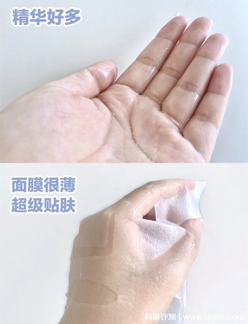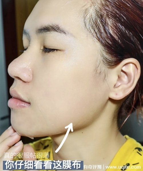 這款面膜的膜布還挺薄的,貼在臉上就像隱形了一樣,它的膜布雖然薄,但還挺能掛住精華的,面膜貼在臉上很服帖,很透氣,敷的時(shí)候也不會(huì)往下面滴精華。