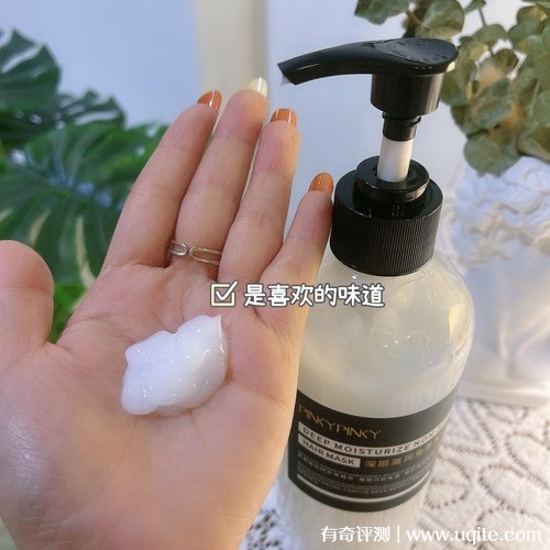 發(fā)膜是瓶裝的,份量很足,按壓頭的設(shè)計,在使用的時候好掌握使用量。發(fā)膜的為傲還挺好聞到,很香,用完之后味道還挺持久的。發(fā)膜是乳白色的膏狀,質(zhì)地很水潤。