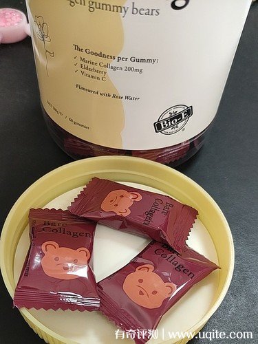 軟糖是小熊的形狀,非常的Q彈可愛,聞起來有淡淡的玫瑰味,嚼起來的口感和QQ糖很像,但是又沒有QQ糖甜,感覺還是很不錯(cuò)的。我一般都是晚上睡前吃兩顆,感覺這樣吸收效果會更好。