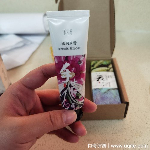 采之汲護手霜到手的時候是一個套裝,一共有兩只,而且它還送了兩片面膜,算起來這個價格還是很劃算的。這兩只護手霜的味道都還挺好聞的,都是偏花香型的,香味不是那種劣質(zhì)香精的味道,我感覺還挺好聞的,香味雖然淡,還是還挺持久的,晚上涂完,早上起來還可以聞到一點淡淡的味道。