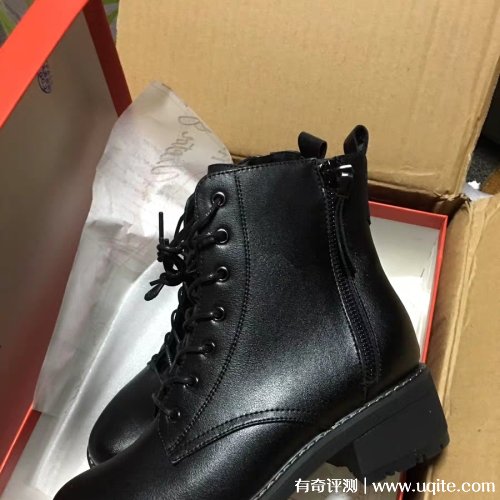總結(jié):馬丁靴穿著比較舒服,穿了一個(gè)星期左右,鞋面都還可以,準(zhǔn)備再穿著看看質(zhì)量,目前感覺(jué)還是挺不錯(cuò)的,里面有一層薄絨穿起來(lái)特別的暖和,不過(guò)對(duì)腳愛(ài)出汗的妹子來(lái)說(shuō),不太友好,因?yàn)樾颖砥な瞧べ|(zhì)的,不太透氣。