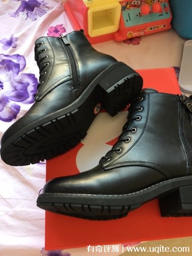 這款馬丁靴出來(lái)有系帶以外,側(cè)邊還有拉鏈,穿、脫都非常的方便,表層是精致的牛紋皮革,保暖的同時(shí)還很透氣,鞋底是橡膠防滑鞋底,行走起來(lái)輕巧靈動(dòng),唯一不足之處是鞋跟有點(diǎn)高,走起路來(lái)沒(méi)有平底那么舒服,但是為了增高我也能忍。