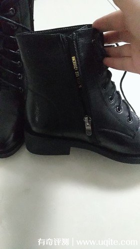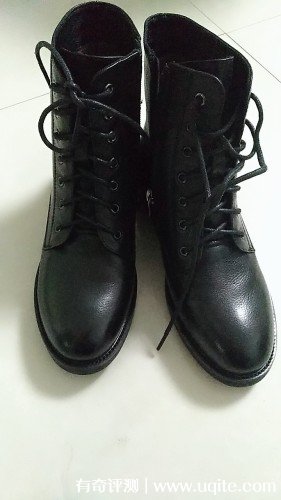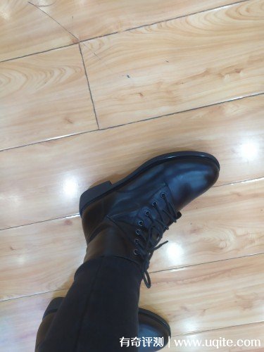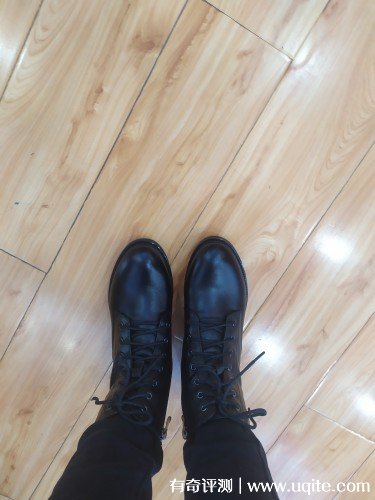這款馬丁靴的皮質(zhì)是全牛皮的,看上去非常有檔次,靴高剛到到我腳踝,非常巧妙的修飾了我腿部的線條,再加上4cm的跟,整個(gè)腿部都被拉長了,在穿搭方面也更加的加分,前面圓頭的設(shè)計(jì)給腳趾預(yù)留了充足的空間,穿上去特別舒服。