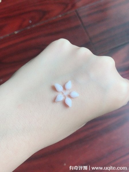 我選擇它的還有一個(gè)理由是看它能擠出小花,很好玩的樣子,自己實(shí)際操作起來也蠻有成就感(剛到手失敗了幾次),莫名讓人心情變好。它的質(zhì)地是偏厚重的類型,滋潤度高,剛抹上有點(diǎn)點(diǎn)油,但是因?yàn)槲者€好,抹勻之后再來回抹個(gè)幾下就能完全吸收,吸收之后沒有油感,皮膚軟軟嫩嫩的,很舒服。