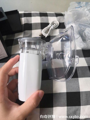 因為是手持款,所以體積一點不大,沒安裝面罩之前看中倒有點像補水儀的設(shè)計。平時出門攜帶會很方便,放在包包里面一點不占地方。面罩是有成人面罩和兒童面罩各一個,所以家里有小孩的也可以使用。