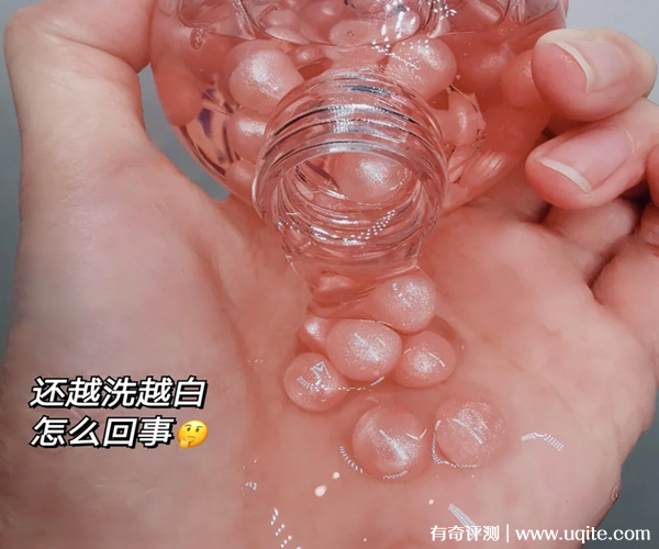 這款沐浴露里面的粉色珍珠,其實是微粒子包裹技術(shù)的美妝級維C和煙酰胺等成分,每次洗完澡之后不會有拔干的感覺。沐浴露遇水之后泡泡很多很綿密,而且上身很親膚。