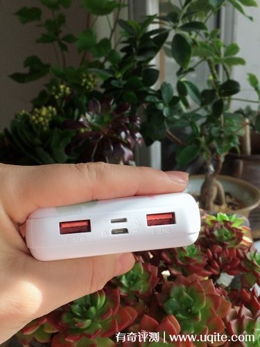 羽博充電寶的電量指示燈在側(cè)面,燈光是很柔和的類型,它的插口還挺多的,可以一次充兩個(gè)手機(jī),而且它還支持各種手機(jī)型號,這一點(diǎn)設(shè)計(jì)的還是很方便的。