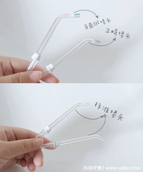 這款沖牙器我第一次用也不覺得敏感,就還挺舒服的,而且它是有記憶功能的,每次打開就是你上一次使用的模式,非常貼心。至于噴頭的使用,我也是后來去網(wǎng)上了解的,說是標(biāo)準(zhǔn)噴頭用于日常清潔;正畸噴頭適用于戴牙套的小伙伴;牙菌斑噴頭用于植牙、牙橋、帶保持器的人。