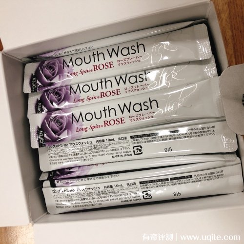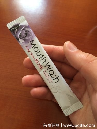 Okina漱口水的包裝都是一小條一小條的獨(dú)立包裝,一次一條,用起來(lái)也干凈衛(wèi)生,平時(shí)出門(mén)攜帶也很方便,它打開(kāi)之后味道很清香,玫瑰的香味還挺濃郁的。