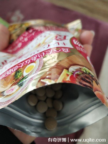 產(chǎn)品雖然是袋裝的,但它拆開之后,是有密封條的,所以完全不會影響保存時間。這一袋里面一共有120粒酵素片,服用方式是比較建議早、晚餐前各服用兩粒,如果遇到出去吃火鍋這樣的大餐,也可以自己調(diào)整一下服用時間,反正一天不超過4粒的量就可以。