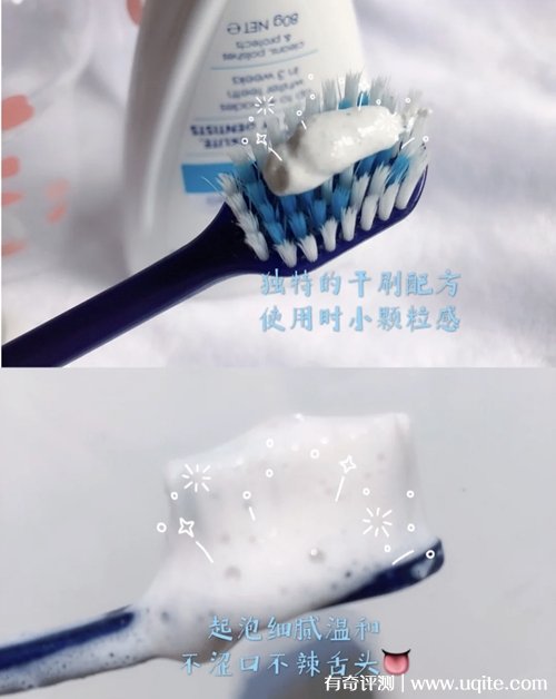 倍潔麗牙膏擠出出來之后里面是白色膏體,里面還帶一些小顆粒,起泡性不錯,入嘴是比較溫和的感覺,不像市面上有些薄荷味的牙膏那樣辣嘴。