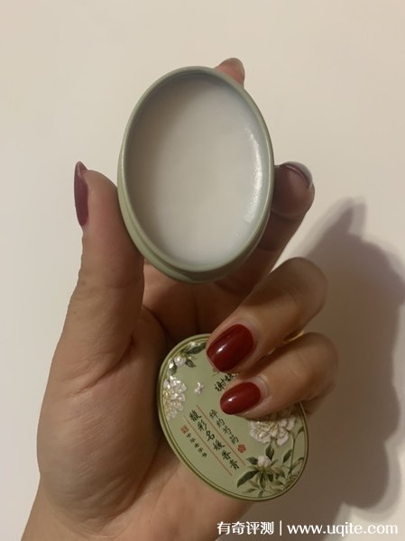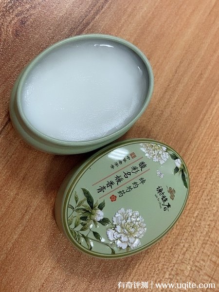 它的盒子就是濃濃的中國風感覺,材質是鐵的,但還挺輕的。膏體和唇膏大差不差,抹了之后一會就干了,不粘膩。我平時主要是抹在脖子、耳后還有手腕,再就是衣服上抹點。它香味和香水比起來是要淡不少的,但是坐在旁邊的人能聞到,每次有風吹過來,香味也就被帶出來更多。