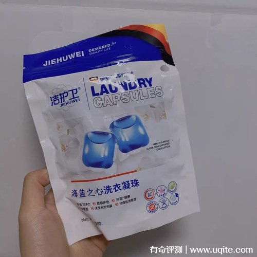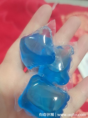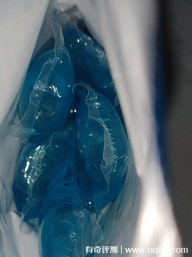 產(chǎn)品是袋裝的,一袋里面有10粒洗衣凝露,凝露的顏色是藍(lán)色的,正方形的形狀,在使用時(shí),直接將一整粒丟進(jìn)洗衣機(jī)就可以了,它外面的這層透明的膜是會(huì)遇水溶解的,所以完全不用擔(dān)心。