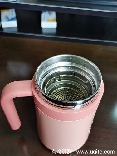 ECOTEK保溫杯密封性也不錯,把杯口擰緊之后,倒扣放著,里面的水也不會漏出來。另外,它還有一股茶水分離設計,里面有一個小漏網(wǎng),用來泡茶也蠻方便的,直接把茶葉放進濾網(wǎng)里面就可以了,而且喝的時候也不用擔心會喝到茶葉渣。