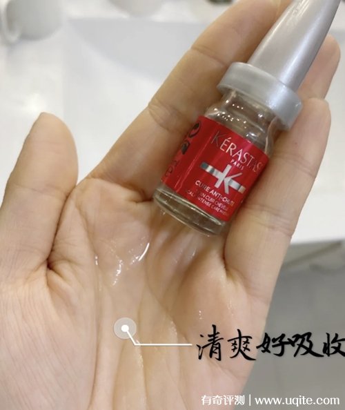 卡詩防脫精華液一瓶不算很大,但分量還是不錯的,我一瓶基本上可以用個四次左右,打開之后它的味道聞著不刺激,用著還蠻溫和的,它的質地是水狀的,流動性很強,涂在頭皮上也不覺得黏膩,也不用擔心會堵塞毛囊。