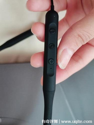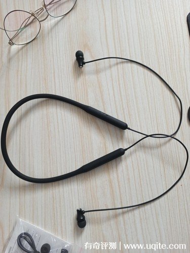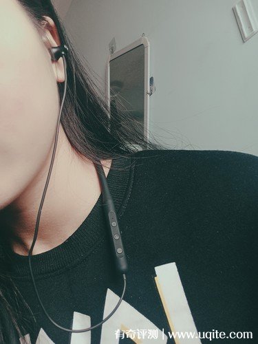 耳機是掛脖的設(shè)計,項圈材質(zhì)是磨砂的,摸起來很有質(zhì)感,戴在脖子上也很舒服,而且這款愛奇藝藍(lán)牙耳機很輕巧,掛在脖子上一點不礙事,平時出門使用既不用擔(dān)心它是藍(lán)牙耳機容易掉,又不用擔(dān)心它是有線耳機會很麻煩,使用完美度很高。