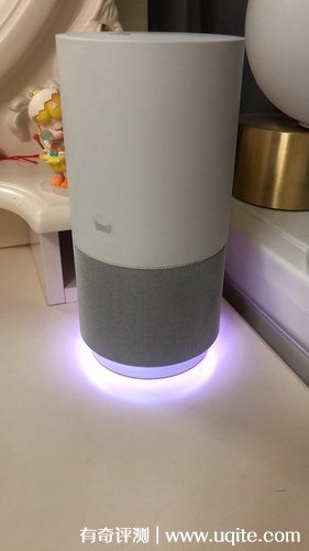 音箱的頂部有音量加減、啟動(dòng)開關(guān)以及語音開啟關(guān)閉按鍵,所以操作起來就還挺方便的。這款天貓精靈智能音箱在播放音樂的動(dòng)感效果就挺強(qiáng)的,而且音質(zhì)很清晰,日常居家聽歌就真的挺合適的。另外晚上把它擺在床邊,可以通過語音助手設(shè)計(jì)起床鬧鐘,這樣起床就不困難了。