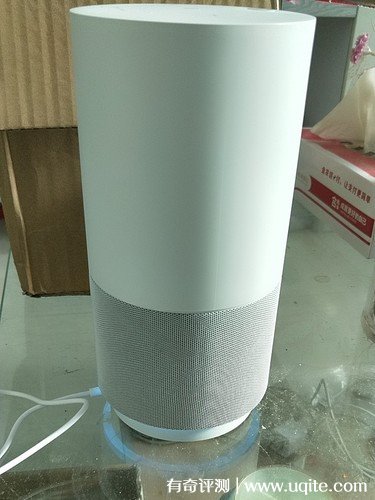 這款天貓精靈智能音箱是圓柱形的設(shè)計(jì),而且顏色有黑、銀白、藍(lán)白、紅四色可選,而我則是入手的銀白色的這款。音箱的體積不大,質(zhì)量和做工很好,看著就還挺不錯(cuò)的。