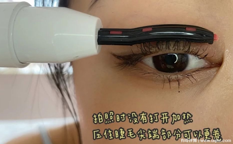 用的時(shí)候要注意,等睫毛膏干了再用,不然眼皮和燙睫毛器都會(huì)弄臟。根部和尖端部分都按壓按壓,會(huì)更卷翹,每撮大概挺留個(gè)七八秒鐘的樣子就好。